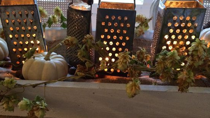Ze starého struhadla se dá také vytvořit stylový svícen. Světlo bude skrze dírky ve struhadle temnější, dodá tak vaší kuchyni venkovský vzhled. Ať už tento svícínek postavíte na okno, nebo doprostřed stolu, rozhodně udělá spoustu parády. Oživit ho můžete třeba větvičkami, které kolem něj rozprostřete.
